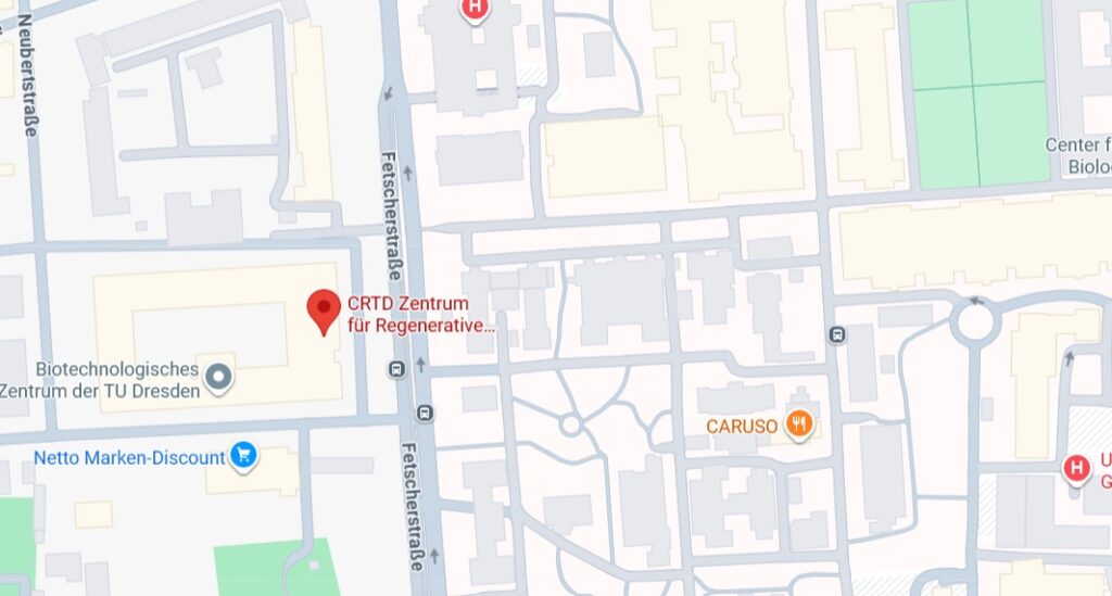 Beide Führungen finden parallel an beiden Tagen statt. Sie können also beide Labore an verschiedenen Tagen besuchen, wenn Sie das möchten. Bitte melden Sie sich mit dem Datum und dem gewünschten Labor (MPI-CBG oder CRTD) unter info@biowisskomm.de an.