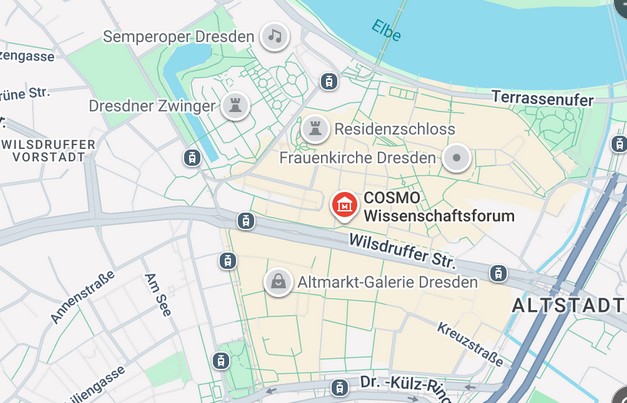 Unsere Veranstaltungen finden an verschiedenen Orten in Dresden statt – die Lagepläne zur Anfahrt finden Sie am Ende dieser Seite.